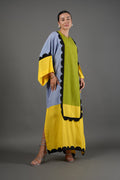 This fun Kaftan falling in our color block range is truly a statemnet piece. Made in beautiful hues its the perfect thing to wear when you want to stand out on any event.