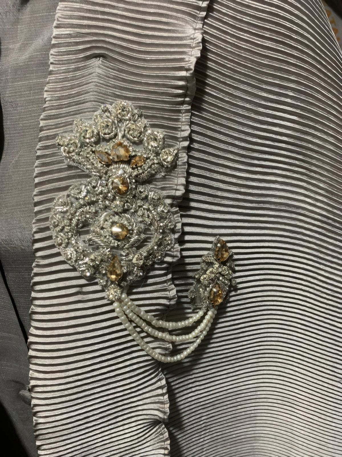 The Kaftan is adorned with a beautiful Jewel Broach.