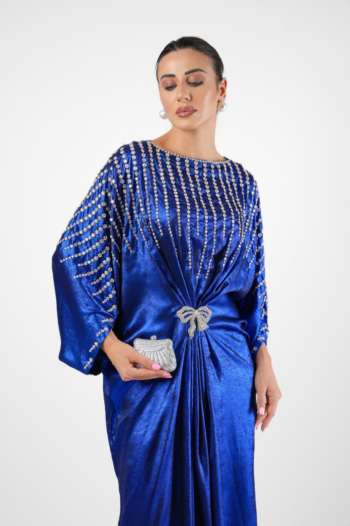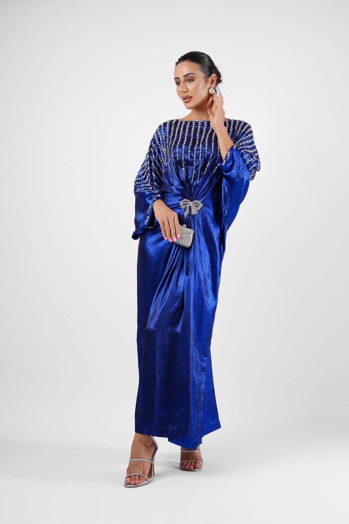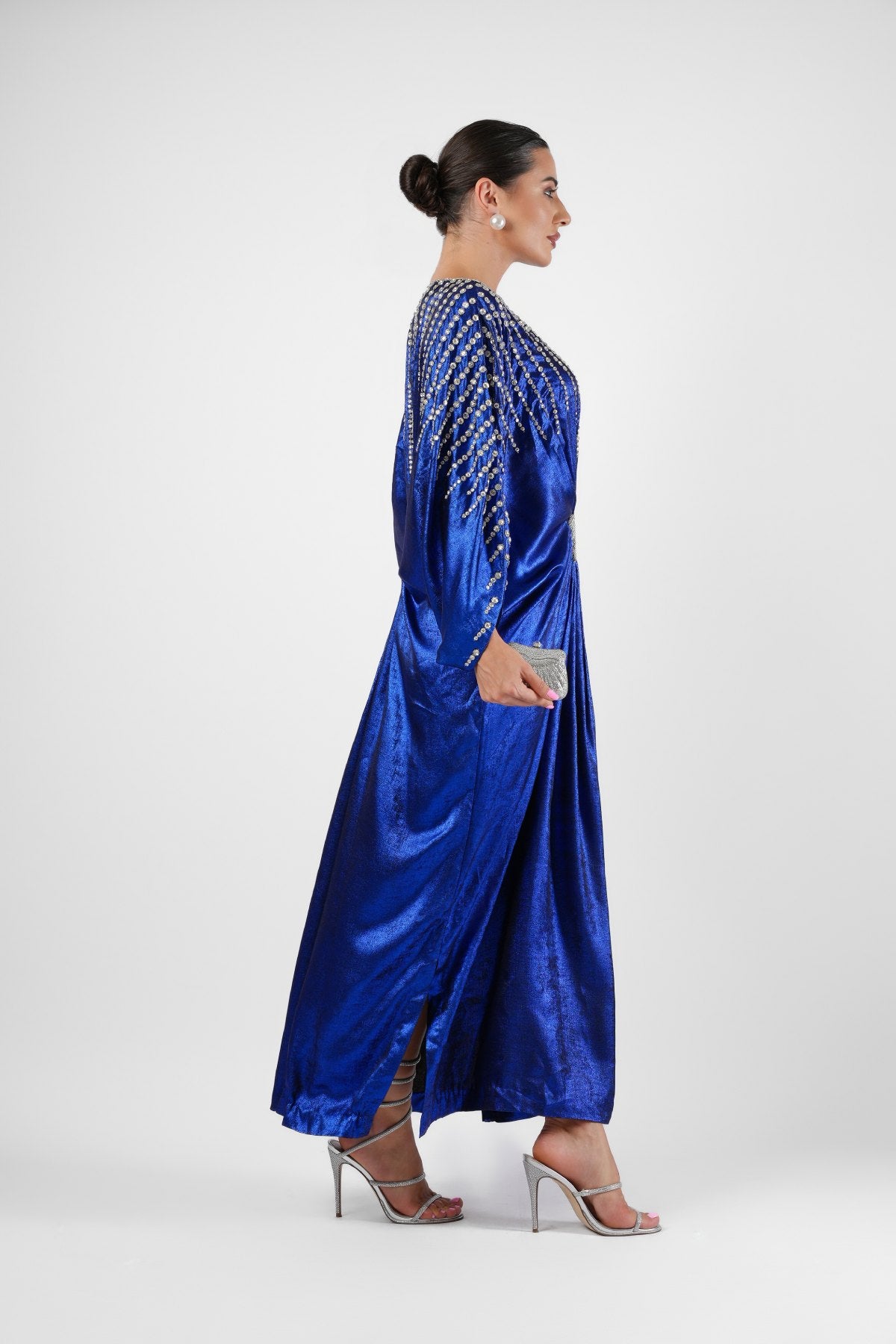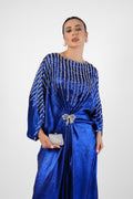 Shimmery foil Georgette Electric Blue Kaftan with sparkling Swarovski hand embellishment.