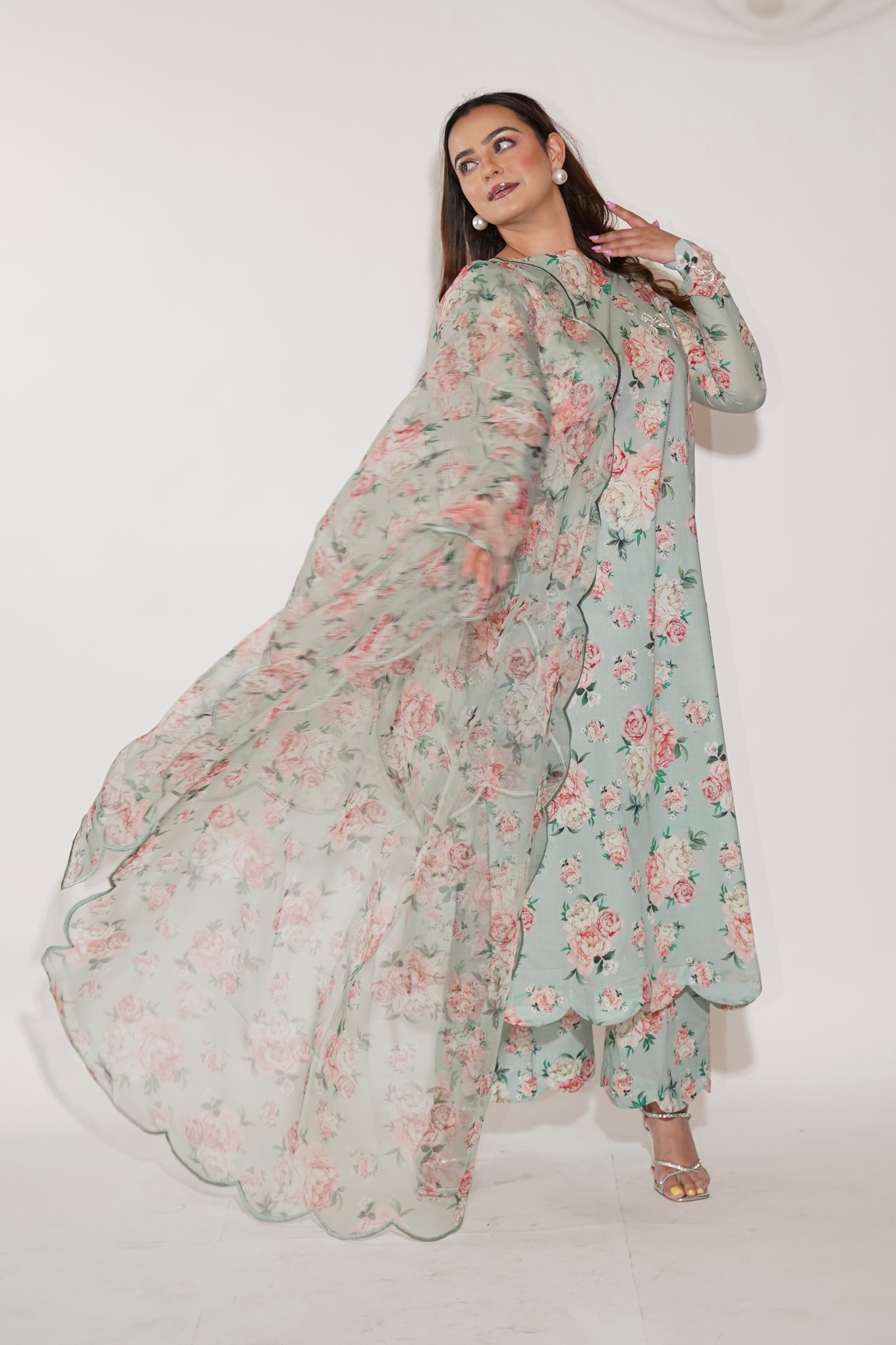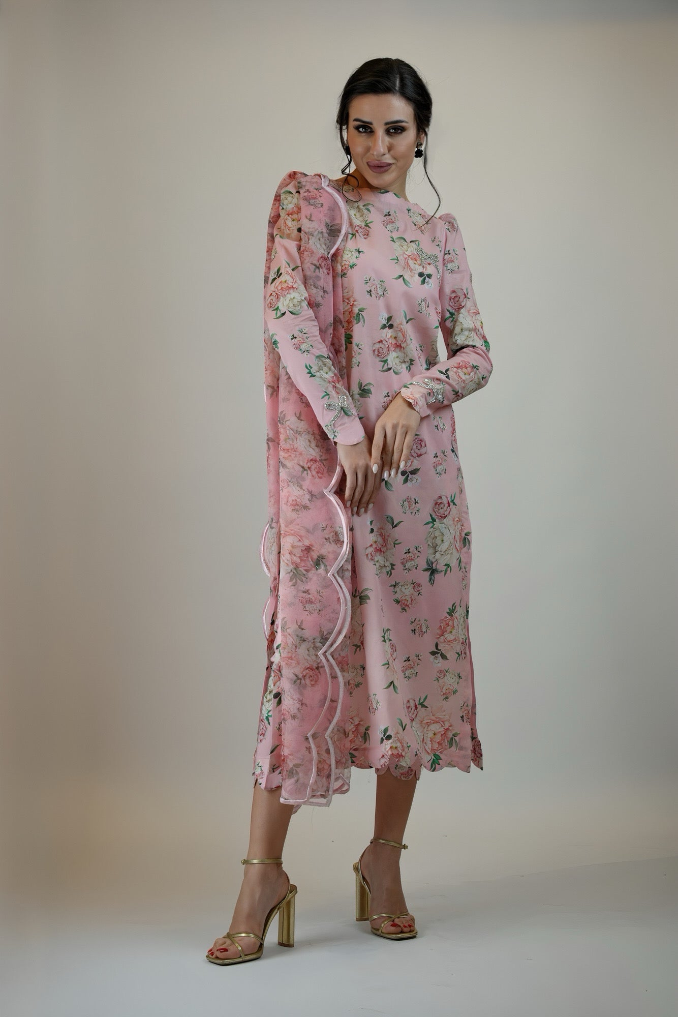 Our MSK Prints are made with the best quality lawn and give, breezy., feminine, floral, English feels.This has an elegant cut with a long straight shirt and long sleeves with shoulder puff.Finishing off with our signature bows this is a beautiful outfit sending out an elegant super feminine vibe.paired with straight pants and printed organza dupatta with scallops.