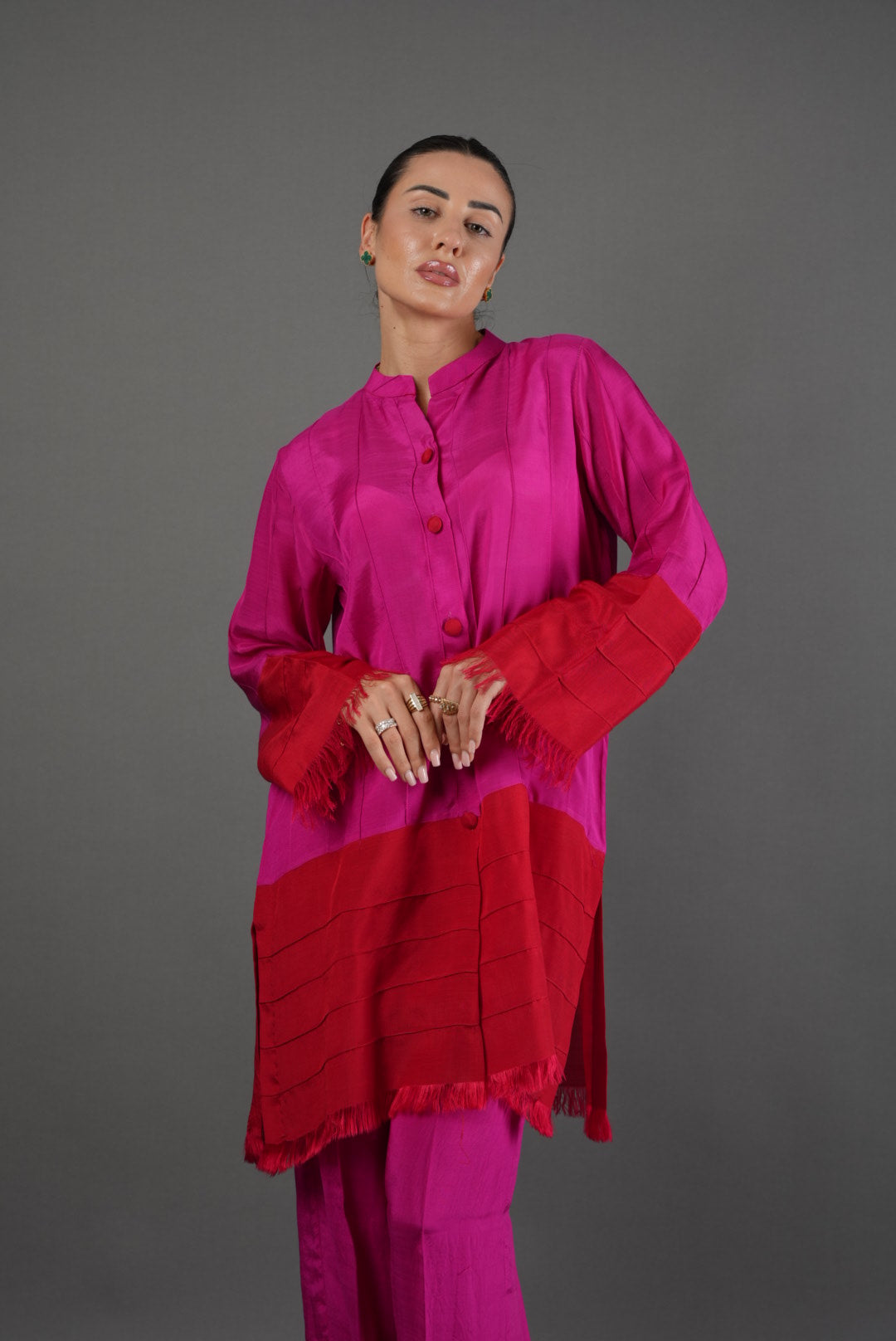 Comfort with Style. A trendy Color block Co ord Set from our color block range made in silk with the most comfortable and luxurious feel.highly versatile article that can be dreesed up and dressed down