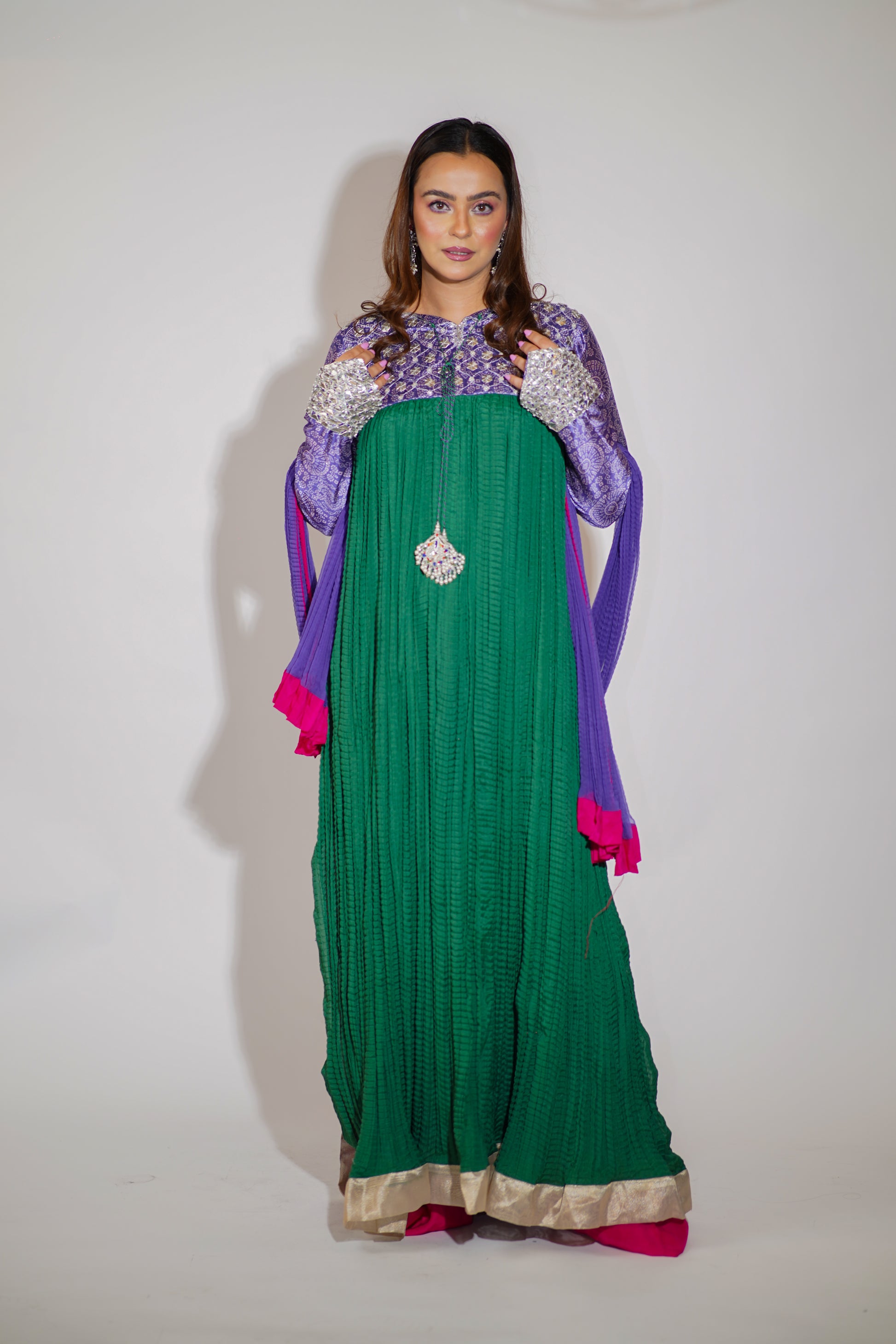 Hand worked with gota and tilla it’s perfect for a traditional event like Eid or a special wedding.